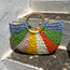 La borsa Eva in paglia con manici rigidi avvolti da cordino presenta una silhouette da bauletto ed è disponibile in tre fantastici e brillanti colorazioni